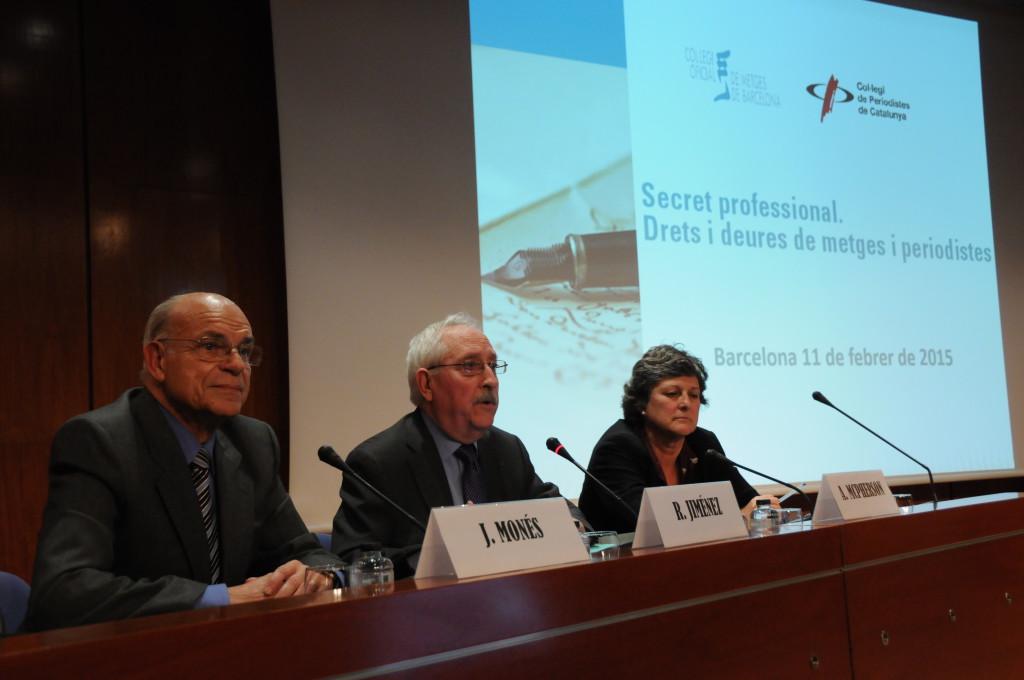 El secret professional al món de la medicina i del periodisme va ser objecte d’un profund debat el passat 11 de febrer al Col·legi de Metges de Barcelona (COMB) durant una jornada organitzada conjuntament amb el Col·legi de Periodistes de Catalunya i que va inaugurar el president del COMB, Jaume Padrós.