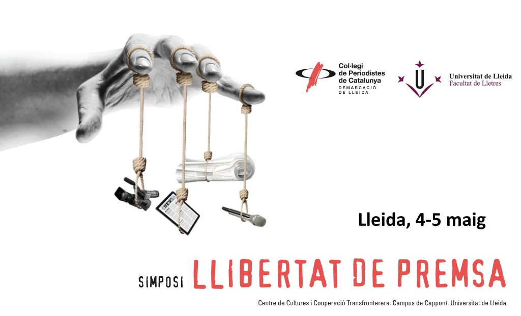 El Col·legi de Periodistes de Catalunya-Demarcació de Lleida i el Departament de Filologia Catalana i Comunicació de la Universitat de Lleida celebraran la tercera edició del Simposi sobre Llibertat de Premsa, els propers 4 i 5 maig al Centre de Cultures i Cooperació Transfronterera del Campus de Cappont.