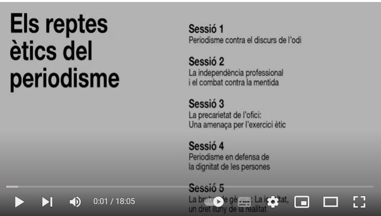 El CIC va recollir en un document audiovisual les reflexions més destacades dels més de 20 periodistes i acadèmics que van intervenir a les diferents taules rodones del cicle “Els reptes ètics del Periodisme”. La projecció es pot consultar al nostre canal de youtube