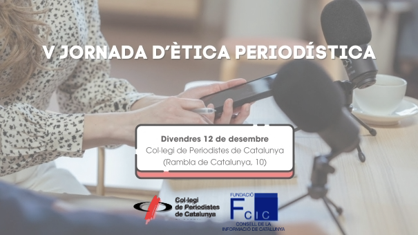 El proper divendres 12 de desembre torna la Jornada d’ètica periodística, organitzada pel Col·legi de Periodistes de Catalunya, el Consell de la Informació de Catalunya (CIC) i les universitats amb estudis de periodisme i comunicació. Aquesta cinquena edició és una trobada clau entre el món acadèmic i professional per debatre sobre els principals dilemes ètics que afronta avui el periodisme.